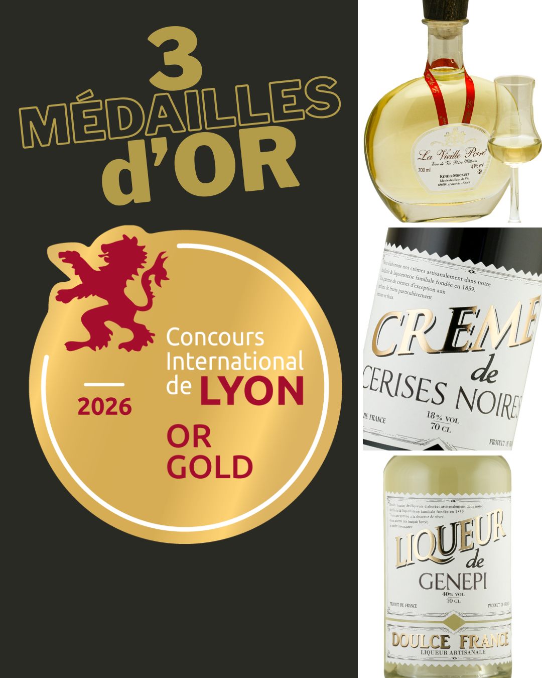 - Médaille d’OR : Crème de Cerises Noires 18%