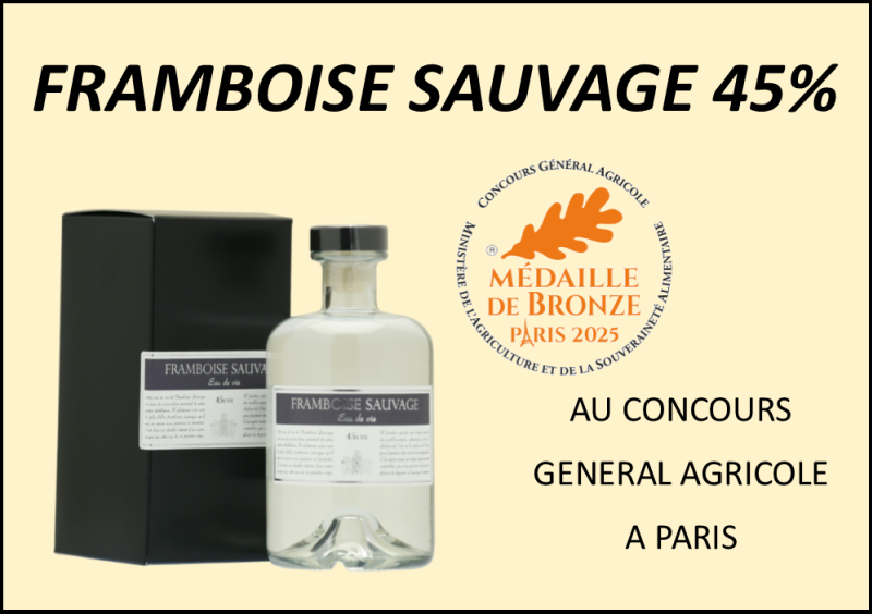 Notre Framboise Sauvage 45% a remporté une médaille de bronze au Concours Général Agricole de Paris.